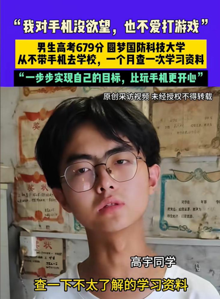 而高宇还提到了自己平时不喜欢玩手机,因为他内心有更深的目标,他知道学习能够改变自己,学习能够让自己拥有更美好的未来。所以在学校里面不能带手机去学校,回到家里面可以玩半天的手机,这半天的手机他并不是用来玩,而是把在学校里累积了一周的学习问题在手机上查找答案。